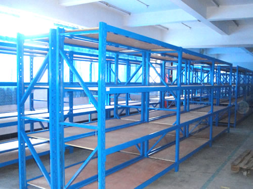 中型貨架是由立柱,橫梁,層板組裝而成的,獨(dú)立的一組有兩片立柱,這樣的貨架叫做主架。