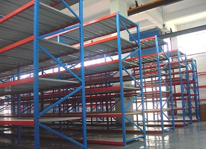 采用柱片與橫梁掛接的結(jié)構(gòu),易為插接組合式,橫梁以50mm節(jié)距調(diào)節(jié)層高,適合于承載大且橫梁較長的情況下,通常每層載重量在350-800kg時使用較合適。層面可鋪鋼板、亦可鋪木板(原木木板、中纖板、帖塑刨花板等)。