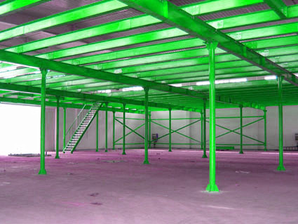 Steel platform adopts the composite structure. Surface spray coating treatment can be made before installing,without welding in the field. It has a short work cycle, removable, will not cause damage on the ground, etc. Generally speaking,steel platform`s loading capacity is between 300kg and 1000kg/ m2. And we choose good loading capacity and less-steel tube material as uprights. The most economical H-shaped steel, used in steel structure projects can be chosen to make the main beams and subsidiary beam. Cold profiled steel panel or stancil panel is used to make floor panel and is fixed on main and subsidiary beams using buckle plate structure. You can chooose different floor plate for fire controle,dustproof and preventing small goods from dropping,according to different needs.There could be also applied with lighting system under the floor. Hydraulic lifting platform, goods elevator and forklift can be applied when delivering the goods.